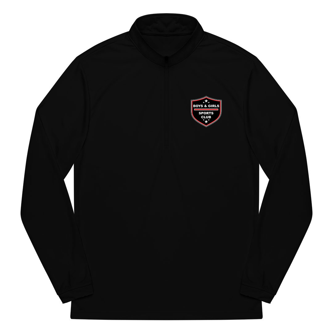 Available in two looks: a bold black, red and white colorway with dynamic contrast panels for game-day pop, or a clean all-black option for a sleek, understated look. Engineered from breathable, moisture-wicking stretch fabric with an athletic cut, raglan sleeves and an easy zipper for quick on/off, it features the Boys & Girls Sports Club crest on the right chest and is durable, machine-washable, and ready for practices, drills, and Saturday-morning scrimmages.